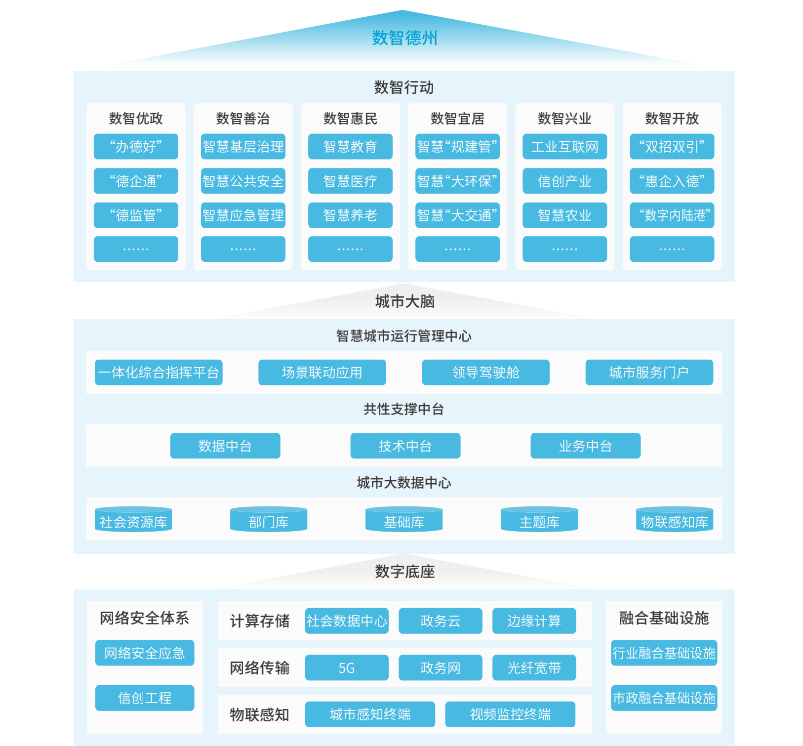 《德州市新型智慧城市建设三年行动计划 (2021-2023 年)》提出六个篇章主要内容。
