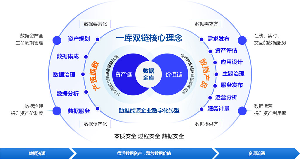 “一库”指的是数字金库,是在统一建设数据资源池基础上,通过数据汇聚、治理与融合,以及数据的规范化管控,形成全域可用、可管、可溯的数据资产体系;“双链”一是“数据资产链”:帮助合作伙伴搭建数据治理体系,涵盖数据集成、治理、分析、服务等数据资产全生命周期管理;二是“数据价值链”:通过数据运营赋能领域场景,让数据推动业务流程再造,模式升级,空间增长。