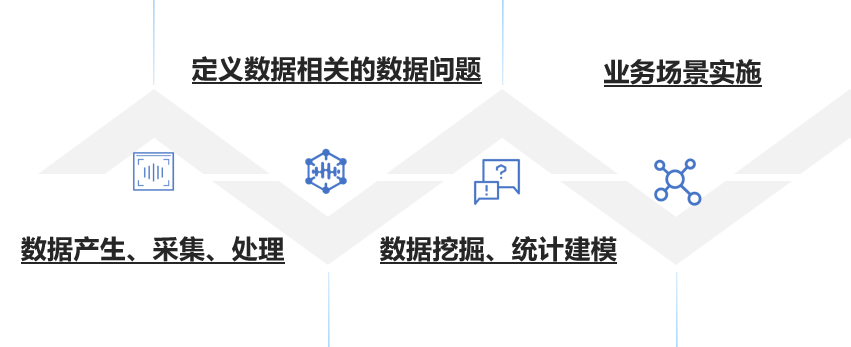 在人们在对数据价值的不断提炼中,慢慢摸索出来数据价值的最大化过程:数据(记录发生了什么事情)=>信息/知识(为什么发生这件事)=>智能/预测(什么事情将要发生)=>洞察/决策(什么是可发生的最佳结果),一步一步迎来的是“数据智能”的发展。