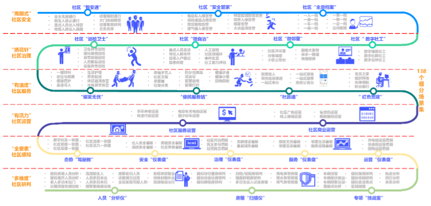 社区虽小,但需要的仍是一个全量的智慧解决方案。可以看出,微脑是场景驱动的环节,数据的融合和流程的再造都要围绕着服务对象的实际需求和痛点去重新进行场景的塑造。同时,借助数字大脑或社区微脑,可以根据需求场景的不断变化和算法的提升,实时对社区应用场景进行更新,保证场景落地的先进性及时效性,提供可持续的社区管理服务。