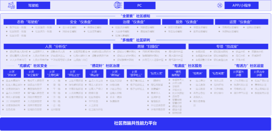 在智慧城市的打造过程中,城市大脑“治制”,社区微脑“治事”。面对当下社区存在的“急难愁盼”的问题,通过社区微脑解决方案为社区注“智”,为城市赋“能”,可以让社区更安全、更高效、更智能、更美丽。