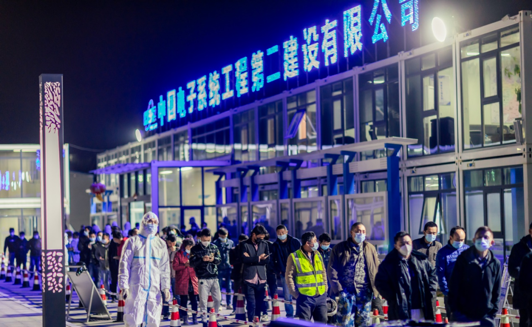 面对上海、无锡、苏州等地的严峻形势,多个区域连夜启动全员核酸检测,防疫工作面临着复杂的重大考验。疫情就是命令,防控就是责任,接到工作任务后,中电二公司整合优势资源,立即组建专项工作组开展方案设计、现场建造等多链条的工作。