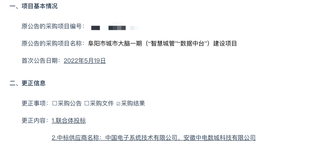 近日,据安徽省政府采购网消息,永乐高系统牵头安徽中电数城科技有限公司联合成功中标阜阳市城市大脑一期(“智慧城管”“数据中台”)建设项目,中标金额为8120万元。
