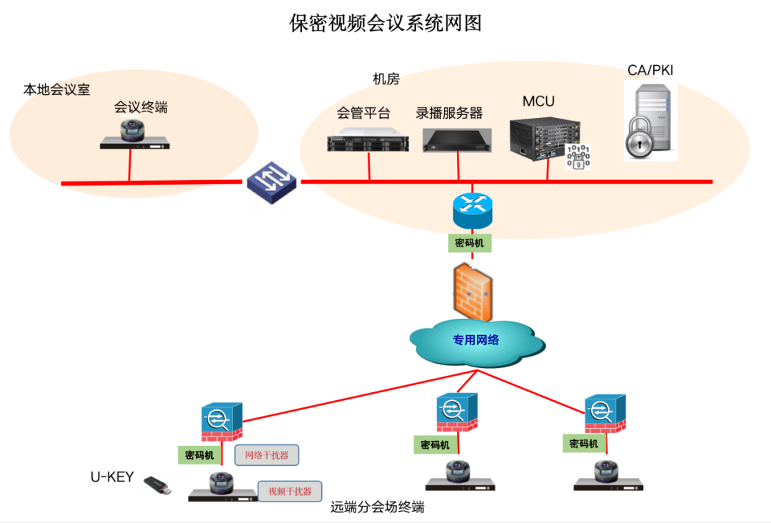 网络安全是网络应用的基础和保障。目前,在政务视频会议建设中,虽然应用了安全防护设备保障网络和信息基本安全,但是底层核心技术仍可能存在潜在网络攻击和威胁。同时视频会议系统数据备份需要增强,主线路已实现省-市-县-乡-村五级全域覆盖,但是备份线路普遍只完成部分单位的接入。随着政务业务的发展和数据量的增长,政务视频会议系统需要在扩容视频带宽的基础上,继续扩展增强视频数据备份安全可信能力。