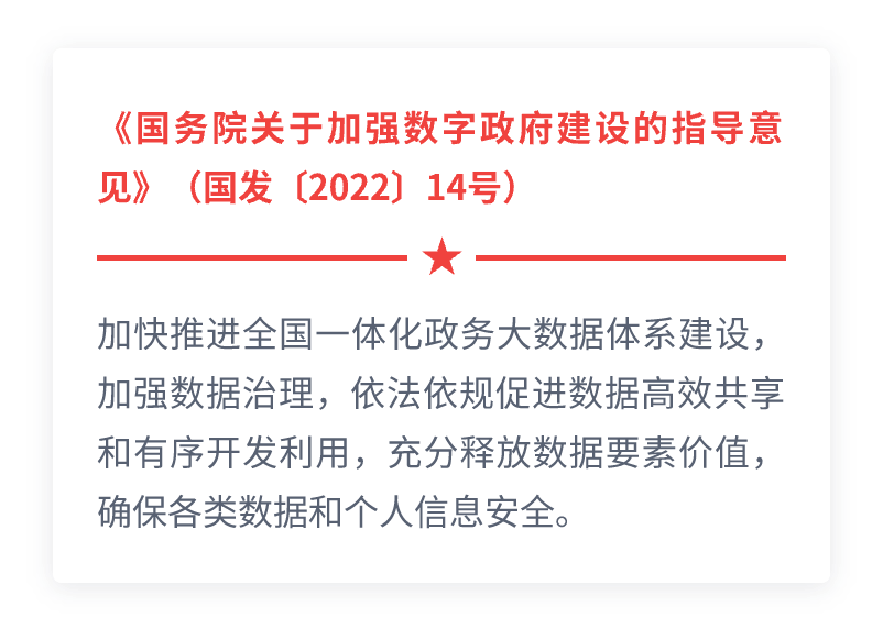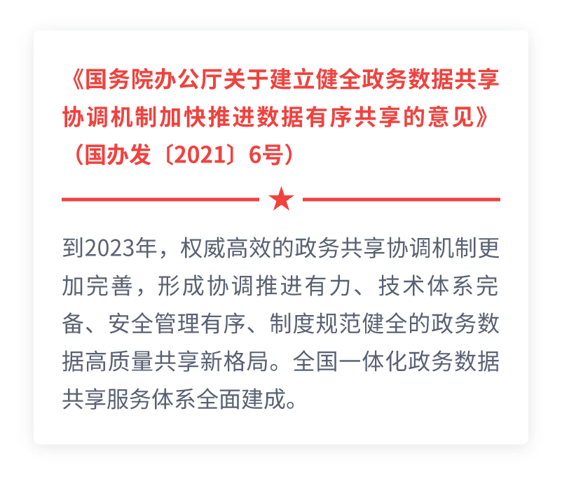 政务数据共享与应用对于推进数字中国建设、实现经济高质量发展以及推动政府治理现代化都具有重要意义。党的十八大以来,党中央、国务院高度重视政务数据共享工作,大力推进一体化政务服务平台建设,各地方各部门积极探索政务数据共享的机制体制建设和应用创新,不断深化政务数据在行政审批、公共服务、社会治理等方面的运用,便利群众和企业办事,辅助领导决策参考,为各地深化“放管服”改革、优化营商环境提供了有力支撑。