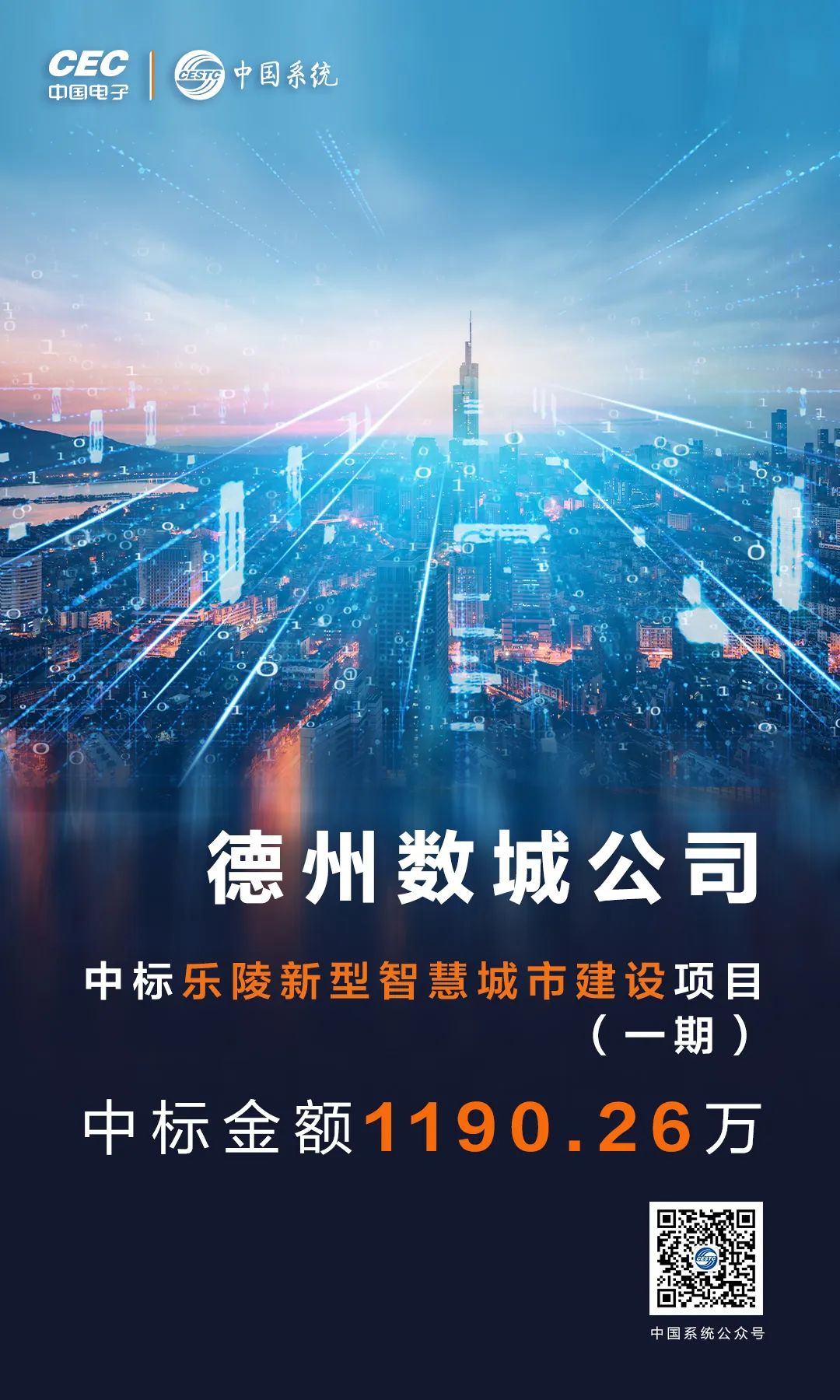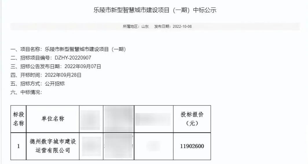 近日,永乐高系统下属合资公司德州数字城市建设运营有限公司成功中标乐陵新型智慧城市建设项目(一期),中标金额1190.26万。