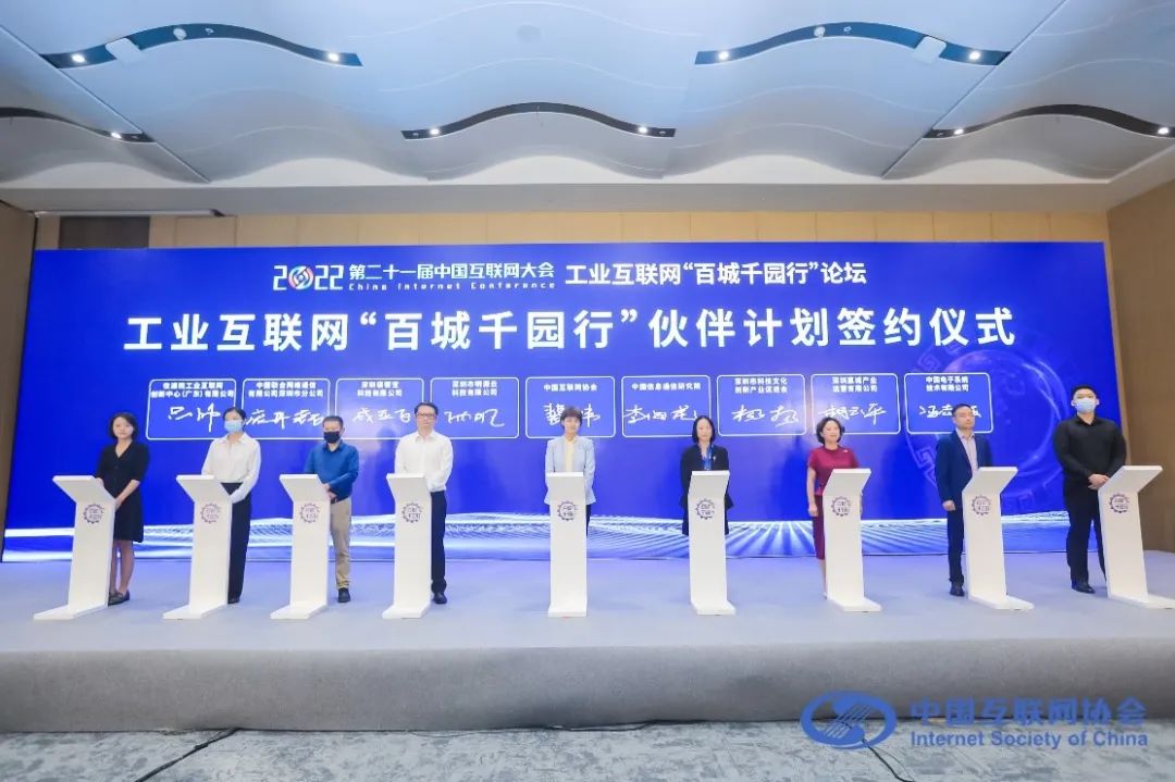 本次工业互联网“百城千园行”论坛,以“工赋园区,数智未来”为主题,聚焦工业互联网赋能“百城千园”、工业互联网助力制造业数字化转型等话题进行交流,共同探讨如何以工业互联网为抓手,发挥工业园区产业集聚优势,推动工业互联网向地市县域落地普及,促进广大企业特别是中小企业加快数字化转型,助力经济高质量发展。论坛上,举行了首批“工业互联网百城千园行伙伴计划”签约仪式。