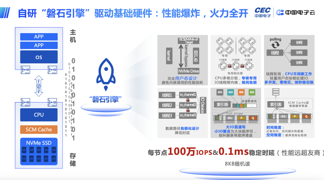 全用户态、超轻量存储软件架构设计是此次永乐高电子云发布的CeaStor存储产品的两大特性。在设计之初,永乐高电子云的存储团队就非常注重性能的提升,尤其是延迟方面,通过代码一点一点的去扣CPU占用,无限压低时延。同时由于轻量化的设计,让存储软件没有频繁的线程切换和内存拷贝,保证存储的性能。除此之外CeaStor存储还利用RDMA等新技术来保证存储产品的性能。